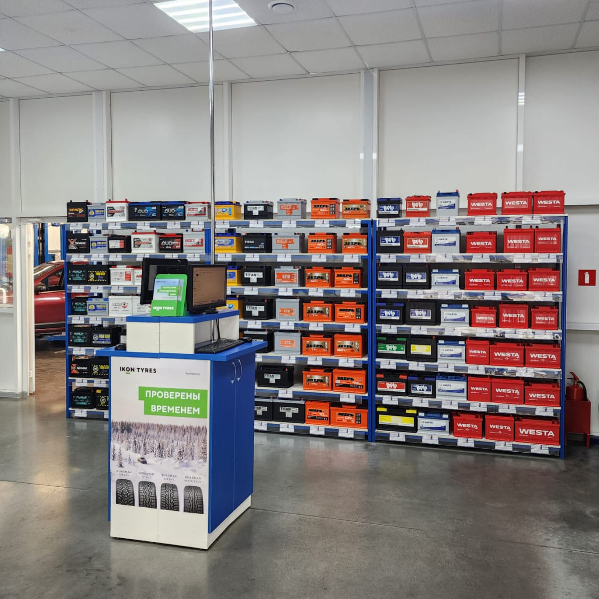 Приятно удивили работой: колеса поменяли оперативно, старые аккуратно упаковали и сложили в багажник. Видно, что мастера работают профессионально. Есть удобная зона ожидания с экраном - можно наблюдать за процессом.