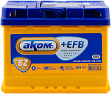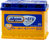 Аккумулятор AKOM +EFB — новейшая разработка завода «Аком» (г. Жигулёвск), созданная с применением технологии EFB. Благодаря усовершенствованной конструкции пластин, технологии PUNCH и улучшенному сепаратору, срок службы увеличен вдвое по сравнению с классическими аккумуляторами.