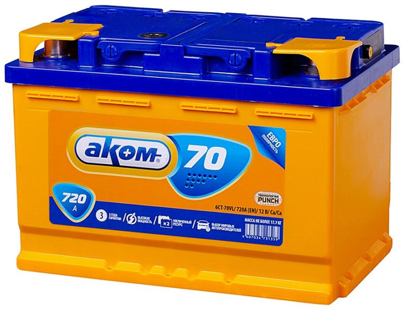 Аналоги аккумулятора AKOM 70 Ач от 720 А обратная полярность европейский тип корпуса