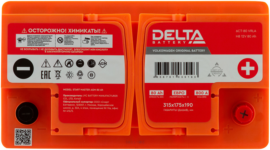 Аналоги аккумулятора DELTA START MASTER 80 Ач 800 А обратная полярность европейский тип корпуса