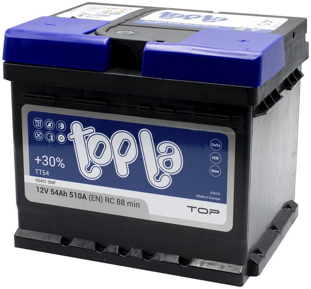 Аналоги аккумулятора Topla Top Sealed (55401 SMF) 54 Ач от 510 А обратная полярность низкий тип корпуса