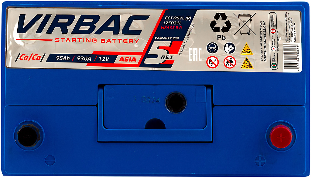 Аналоги аккумулятора VIRBAC Asia 95 Ач от 930 А обратная полярность азиатский тип корпуса