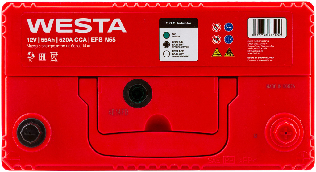 Аналоги аккумулятора WESTA Korea (EFB N55) 55 Ач от 520 А обратная полярность азиатский тип корпуса