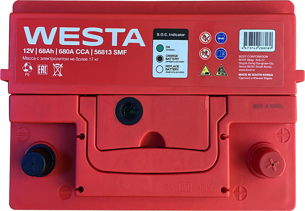 Аккумуляторы WESTA Korea SMF производятся на заводе BOST CORPORATION в Южной Корее с использованием новейших технологий и материалов премиум-класса. Эти батареи предназначены для большинства современных бензиновых и дизельных легковых автомобилей. Благодаря своей конструкции и технологии изготовления они обеспечивают надежное питание всех современных бортовых электроприборов.