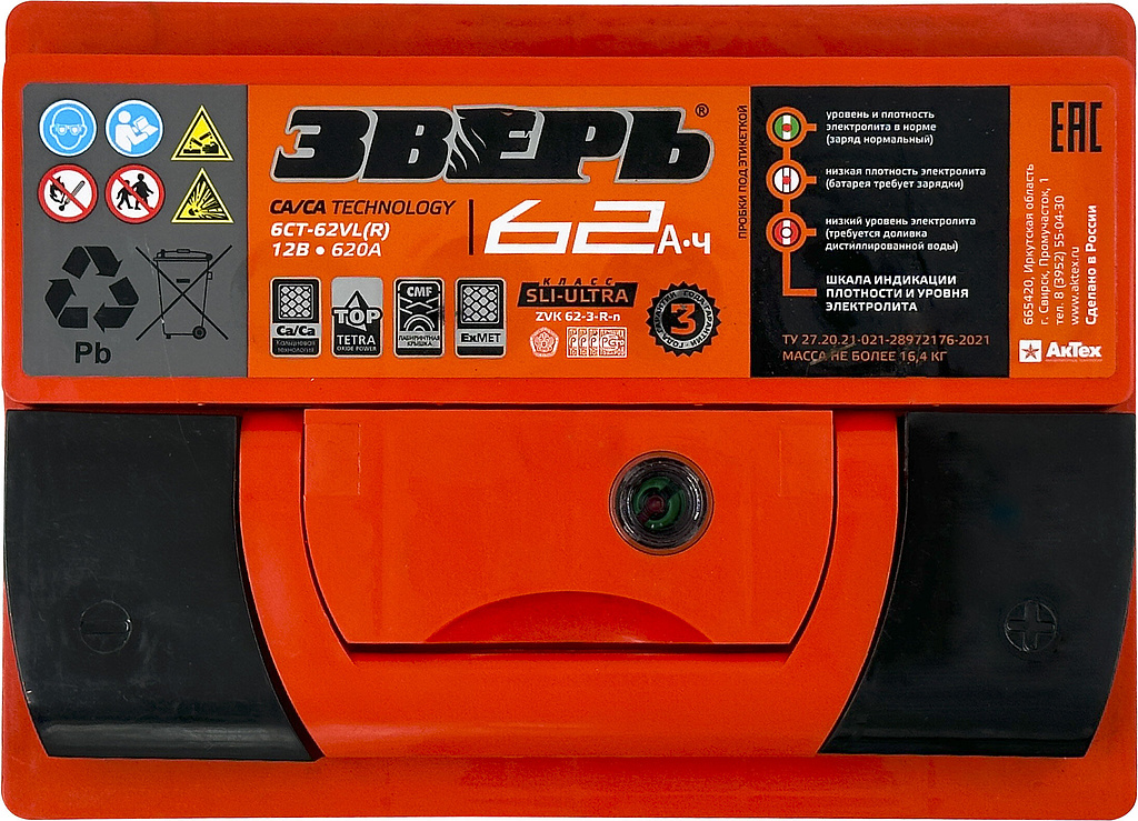 Аналоги аккумулятора ЗВЕРЬ 62 Ач от 620 А обратная полярность низкий тип корпуса