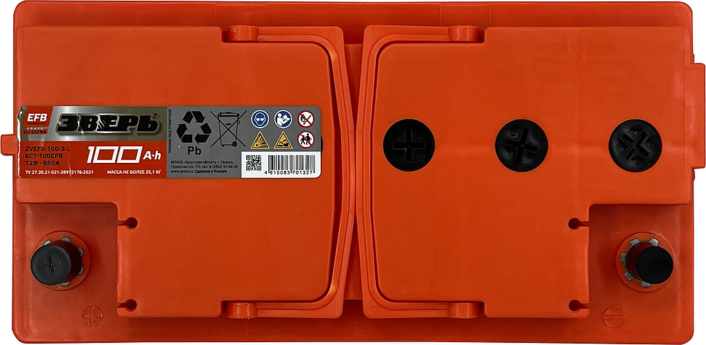 Аккумулятор ЗВЕРЬ EFB 100 Ач 860 А прямая полярность